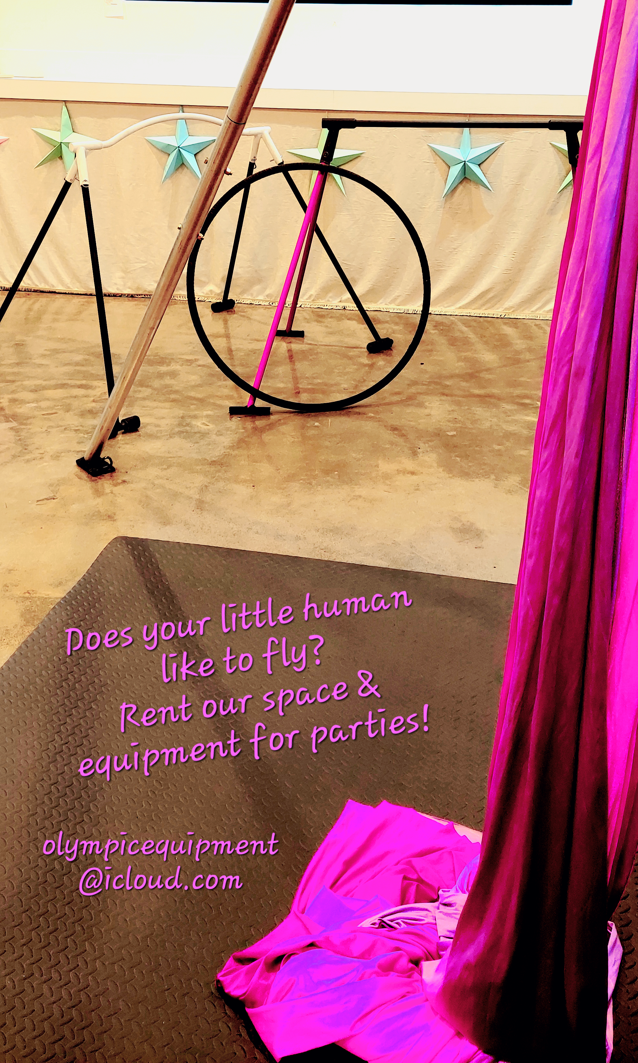 Aerial silks, hoop, sling & backflip trainer K-12, Adults can play too.